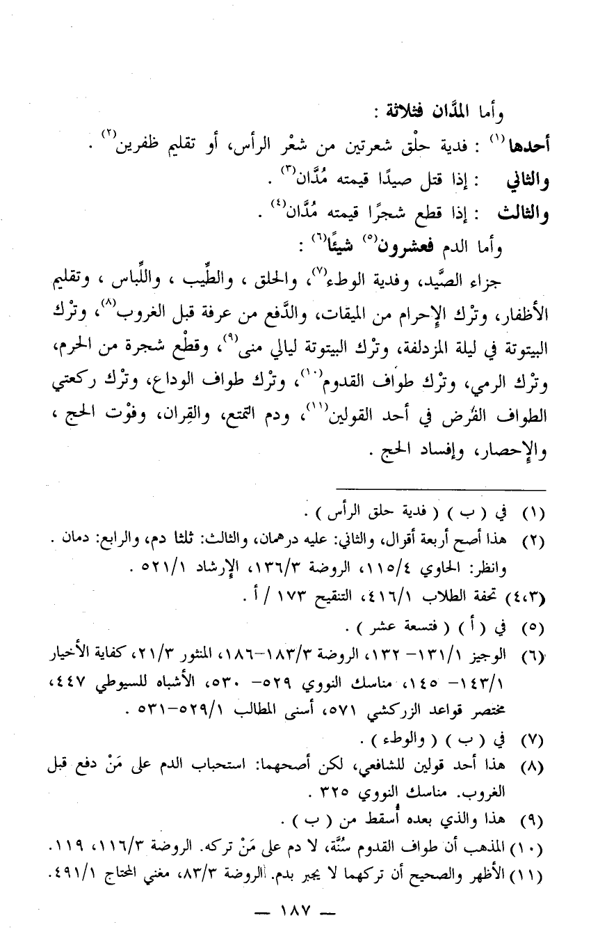 6 الوجيز 1/131-132، الروضة 3/183-186، المنثور 3/21، كفاية الأخيار 1/143-145، مناسك النووي 529-530، الأشباه للسيوطي 447، مختصر قواعد الزركشي 571، أسنى المطالب 1/529-531.