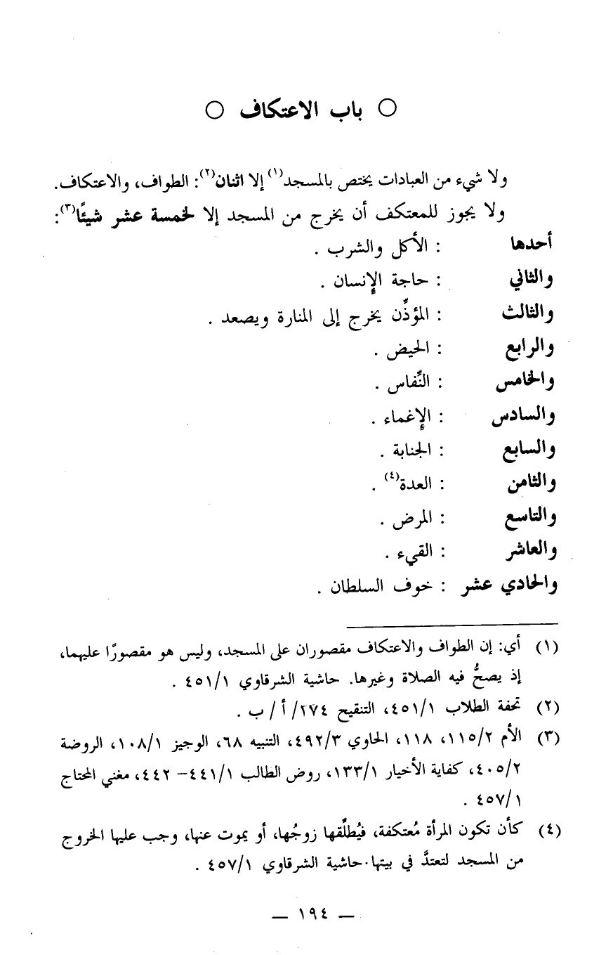 ولا يجوز للمكتعف أن يخرج من المسجد إلا لخمسة عشر شيئا 3: