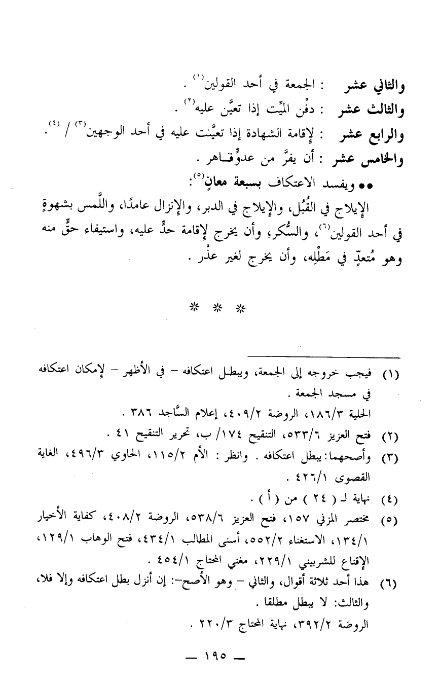 ويفسد الاعتكاف بسبعة معانٍ 5: