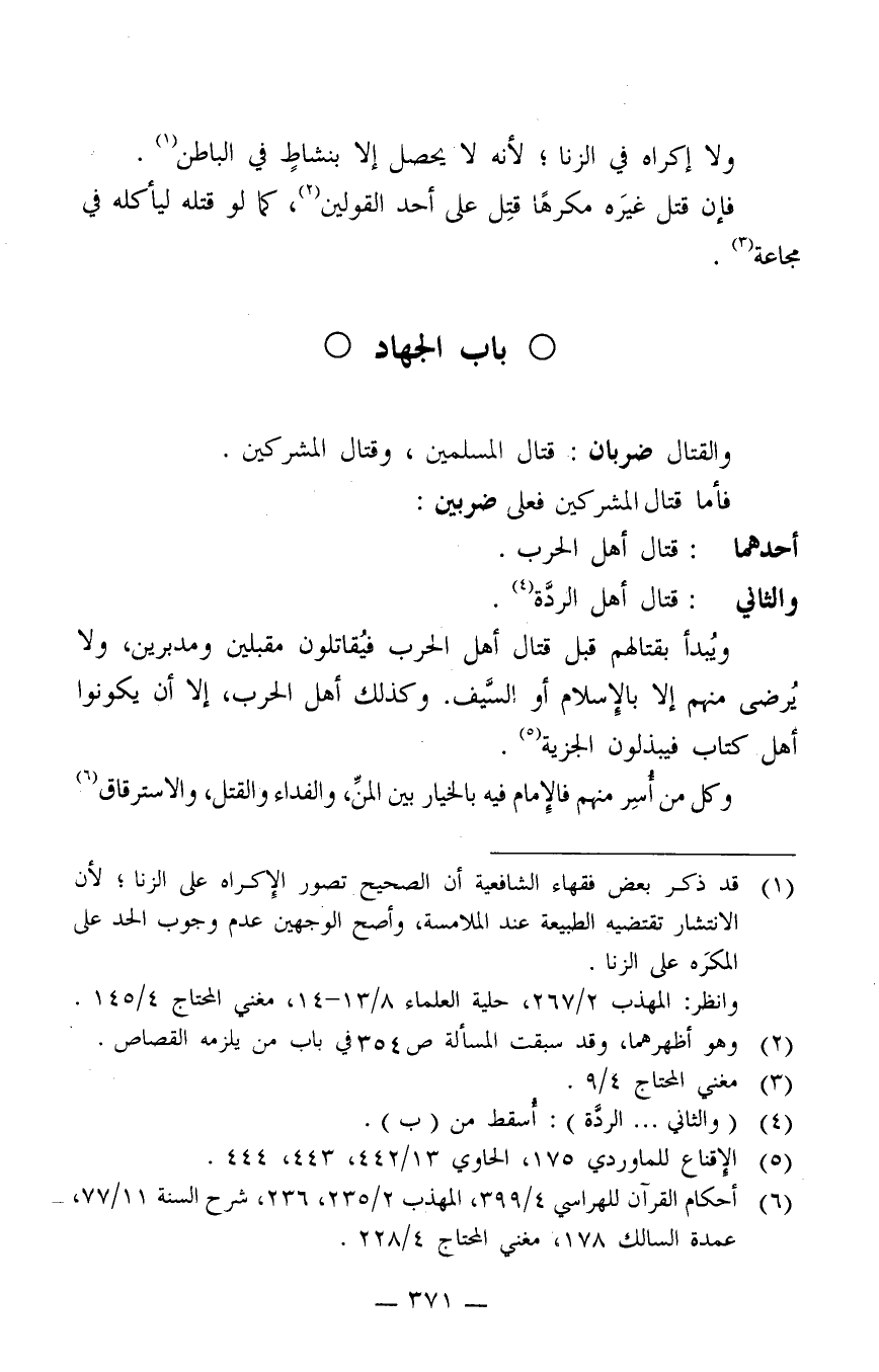6 أحكام القرآن للهراسي 4/399، المهذب 2/235، 236، شرح السنة 11/77، عمدة السالك 178، مغني المحتاج 4/228.