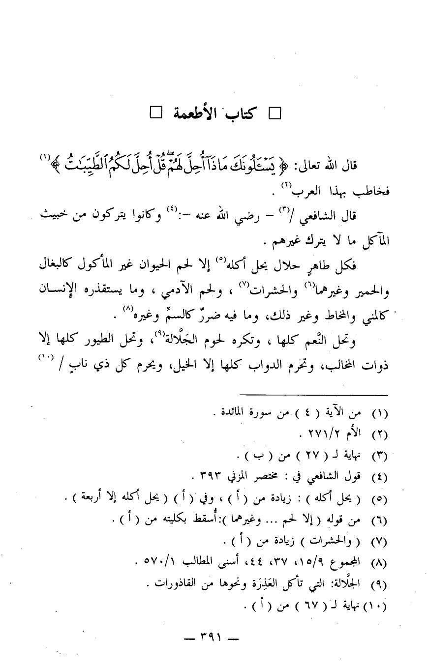 قال الشافعي /3 - رضي الله عنه -:4 "وكانوا يتركون من خبيث المآكل ما لا يترك غيرهم".