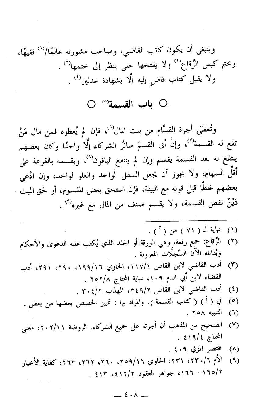 5 في (أ) (كتاب القسمة) . والمراد بها: تمييز الحصص بعضها من بعض.