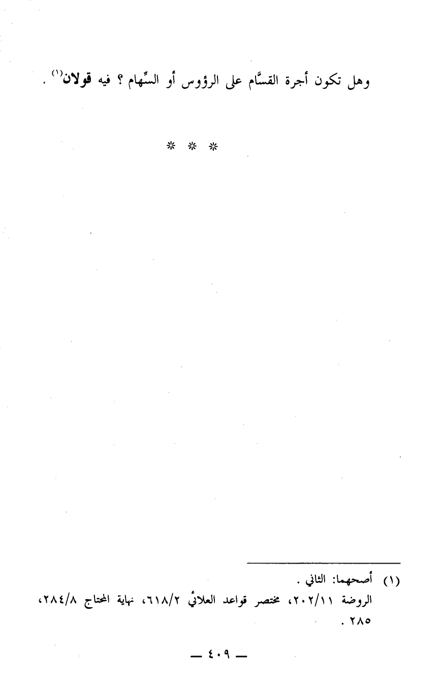 وهل تكون أجرة القسَّام على الرؤوس أو السهام؟ فيه قولان 1.