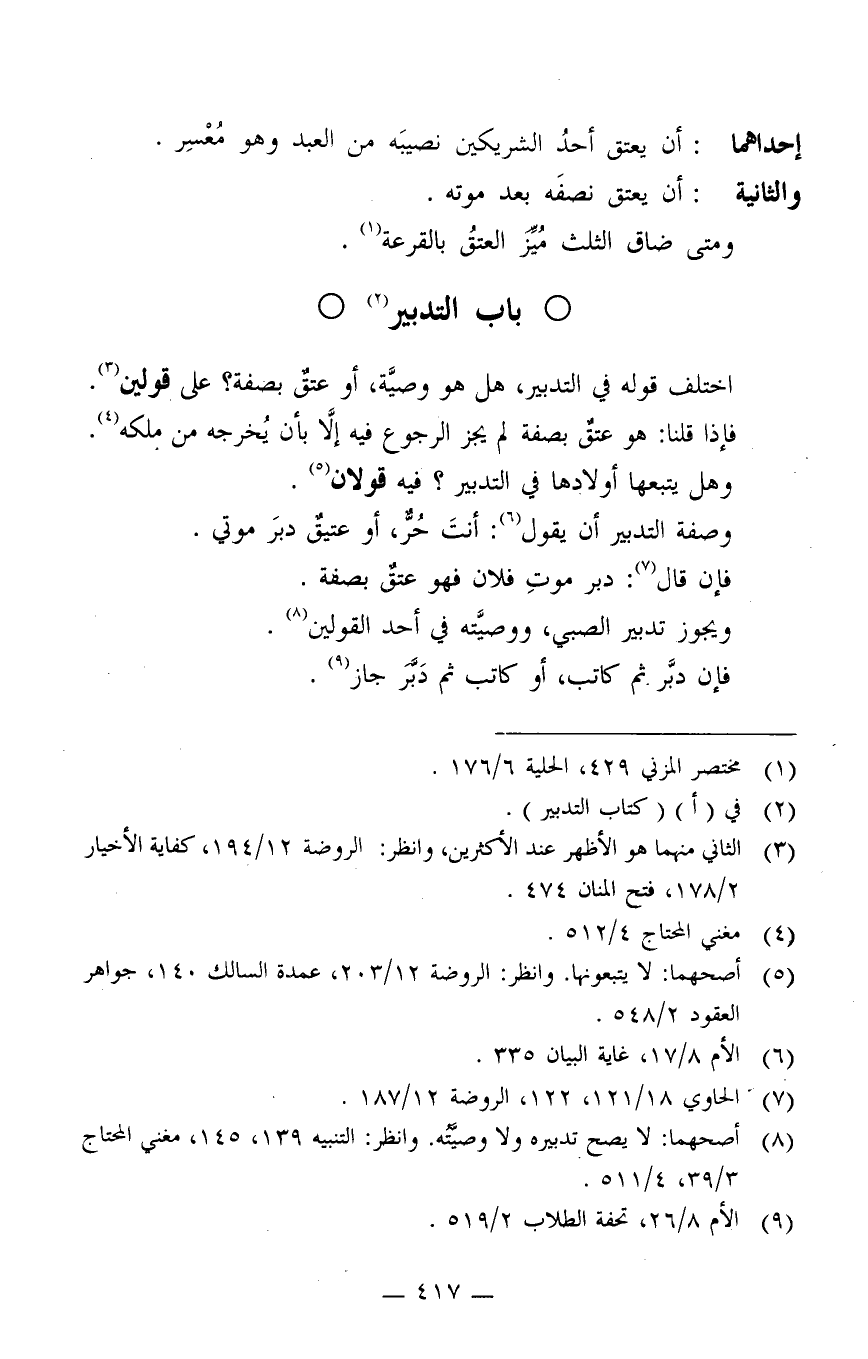 وصفة التدبير أن يقول6: "أنت حر، أو عتيقٌ دبر موتي".