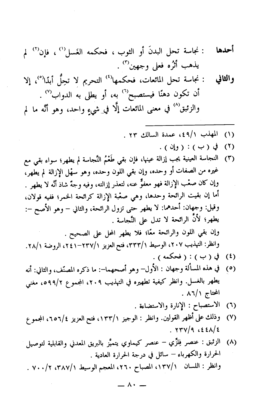 والثاني: نجاسة تحل المائعات، فحكمها4 التحريم لا تحل أبدا5، إلا أن يكون دهنا فيستصبح6 به، أو يطلى به الدواب7