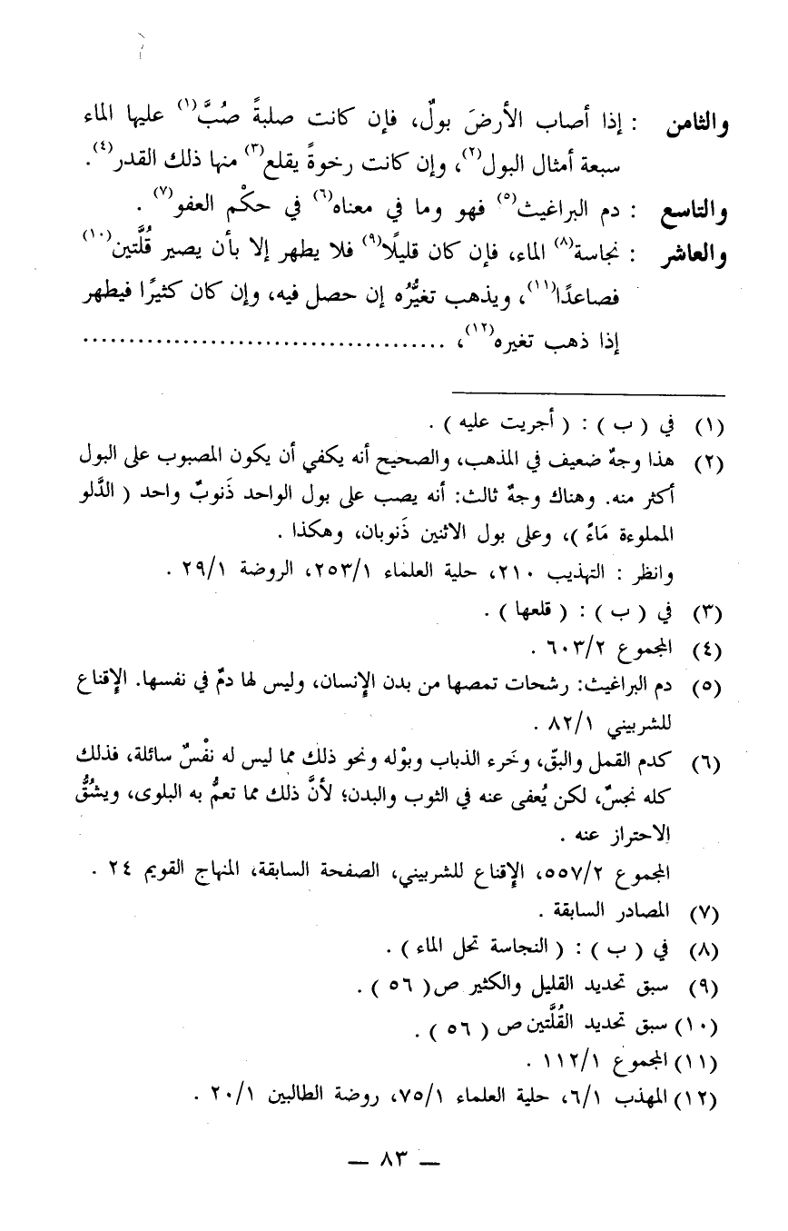 12 المهذب 1/6، حلية 1/75، روضة الطالبين 1/20.