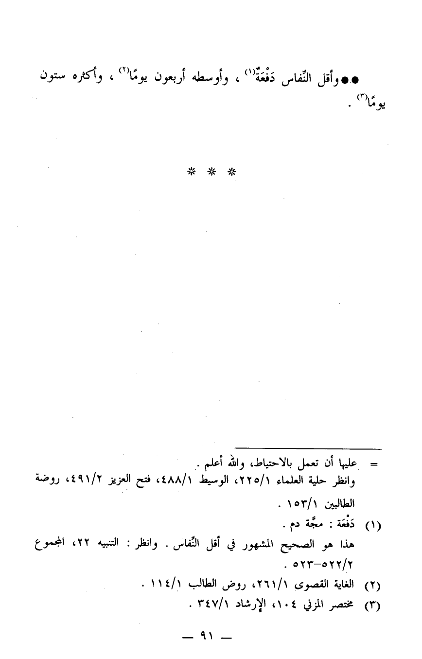 وأقل النفاس دَفْعَةٌ1، وأوسطه أربعون يوما2، وأكثره ستون يوما3