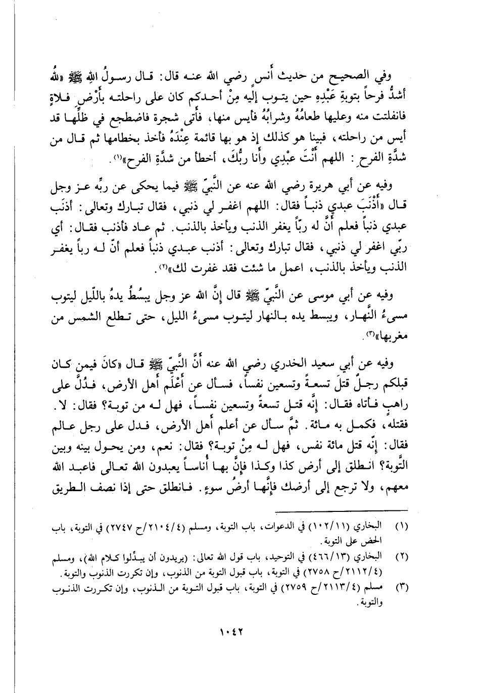 2 البخاري "13/ 466" في التوحيد، باب قول الله تعالى: {يُرِيدُونَ أَنْ يُبَدِّلُوا كَلامَ اللهِ} ، ومسلم "4/ 2112/ ح2758" في التوبة، باب قبول التوبة من الذنوب، وإن تكررت الذنوب والتوبة.