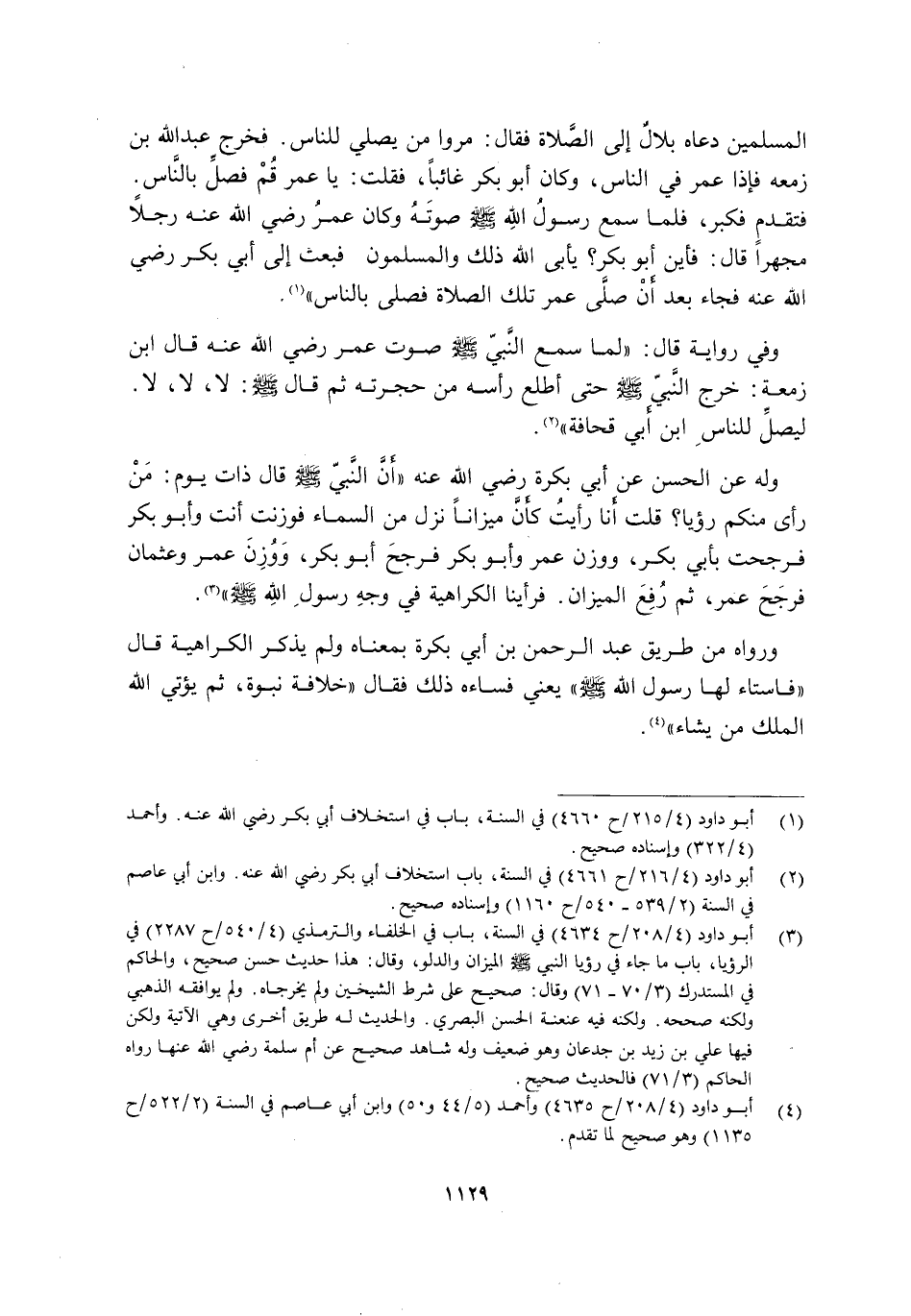 2 أبو داود "4/ 216/ ح4661"في السنة، باب استخلاف أبي بكر رضي الله عنه. وابن أبي عاصم في السنة "4/ 539-540/ ح1160". وإسناجه صحيح.