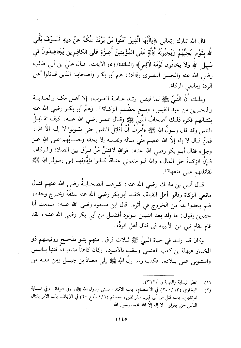 2 البخاري "13/ 250" في الاعتصام، باب الاقتداء بسنن رسول الله صَلَّى اللَّهُ عَلَيْهِ وَسَلَّمَ، وفي الزكاة، وفي استتابة المرتدين، باب قتل من أبى قبول الفرائض، ومسلم "1/ 51/ ح20" في الإيمان، باب الأمر بقتال الناس حتى يقولوا: لا إله إلا الله محمد رسول الله.