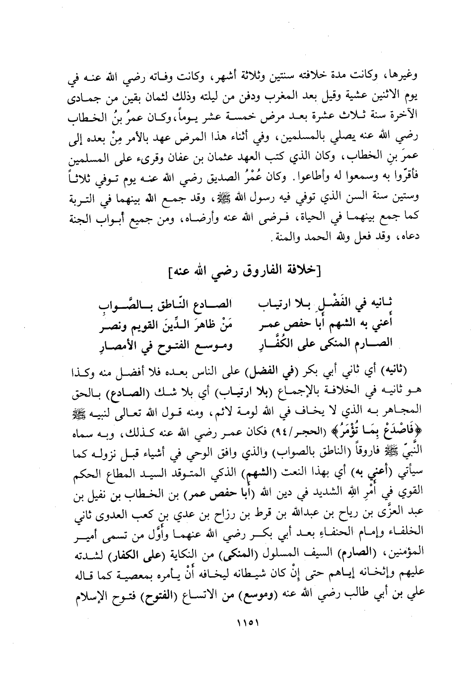 ثَانِيهِ فِي الْفَضْلِ بِلَا ارْتِيَابٍ ... الصَّادِعُ النَّاطِقُ بِالصَّوَابِ
