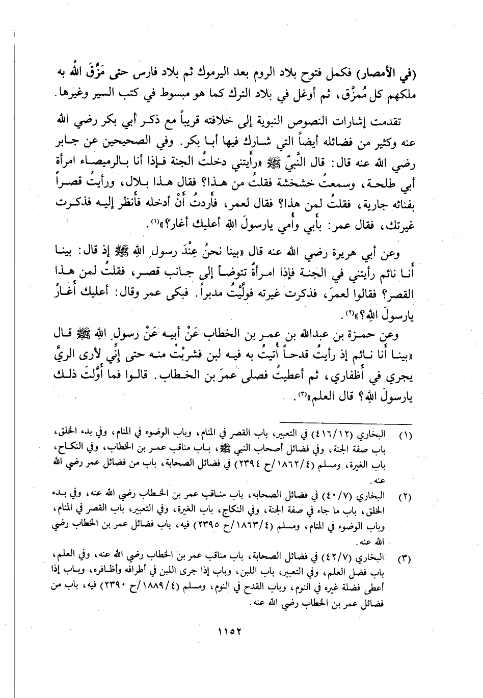 1 البخاري "12/ 416" في التعبير، باب القصر في المنام، وباب الوضوء في المنام، وفي بدء الخلق، باب صفة الجنة، وفي فضائل أصحاب النبي صَلَّى اللَّهُ عَلَيْهِ وَسَلَّمَ، باب مناقب عمر بن الخطاب، وفي النكاح، باب الغيرة، ومسلم "4/ 1862/ ح2394" في فضائل الصحابة، باب من فضائل عمر رضي الله عنه.