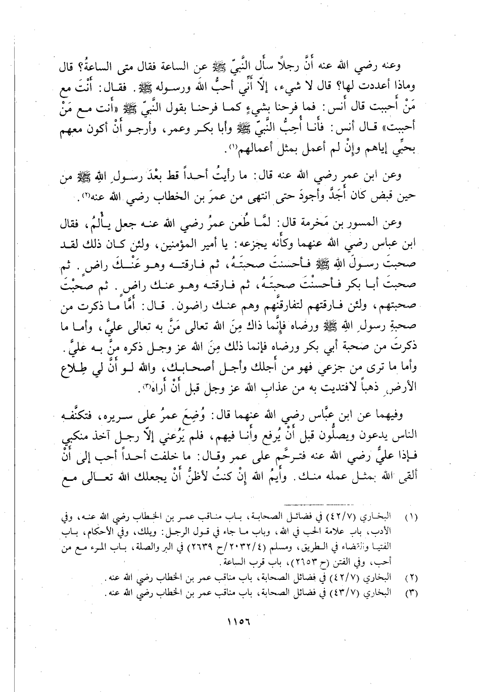 1 البخاري "7/ 42" في فضائل الصحابة، باب مناقب عمر بن الخطاب رضي الله عنه، وفي الأدب، باب علامة الحب في الله، وباب ما جاء في قول الرجل: ويلك، وفي الأحكام، باب الفتيا والقضاء في الطريق، ومسلم "4/ 2032/ ح2639" في البر والصلة، باب المرء مع من أحب، وفي الفتن "ح2953"، باب قرب الساعة.