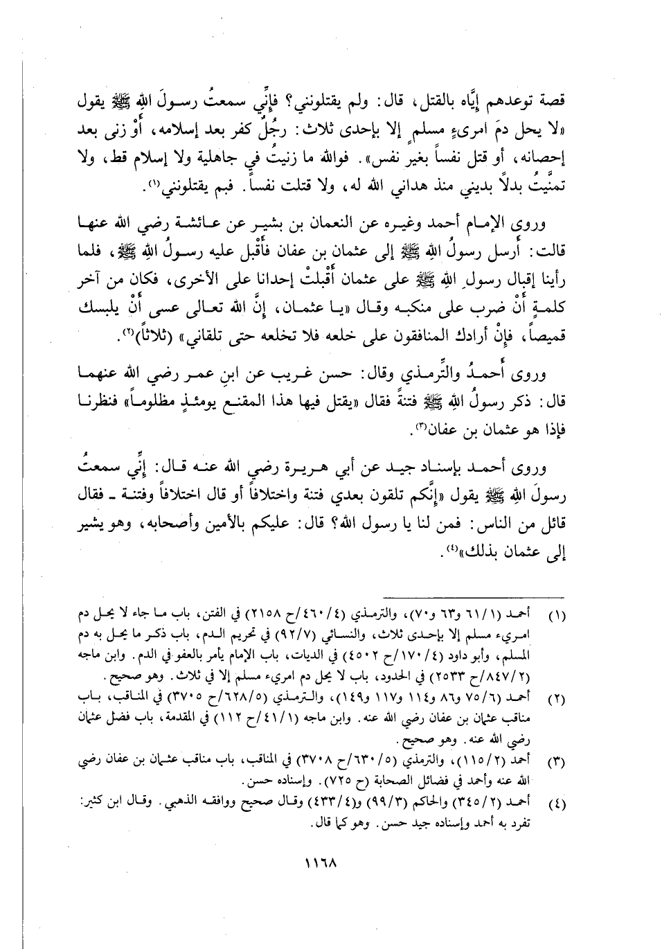 2 أحمد "6/ 75 و86 و144 و117 و149" والترمذي "5/ 628/ ح3705" في المناقب، باب مناقب عثمان بن عفان رضي الله عنه. وابن ماجه "1/ 41/ ح112" في المقدمة، باب فضل عثمان رضي الله عنه. وهو صحيح.