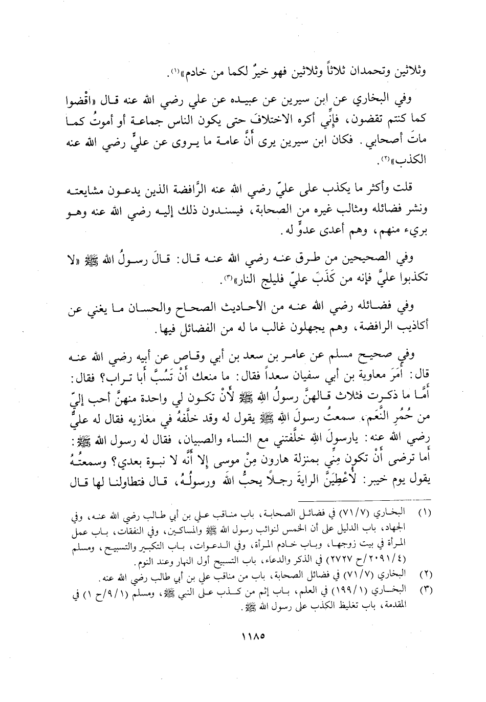 وَفِي فَضَائِلِهِ رَضِيَ اللَّهُ عَنْهُ مِنَ الْأَحَادِيثِ الصِّحَاحِ وَالْحِسَانِ مَا يُغْنِي عَنْ أَكَاذِيبِ الرَّافِضَةِ, وَهُمْ يَجْهَلُونَ غَالِبَ مَا لَهُ مِنَ الْفَضَائِلِ فِيهَا.
