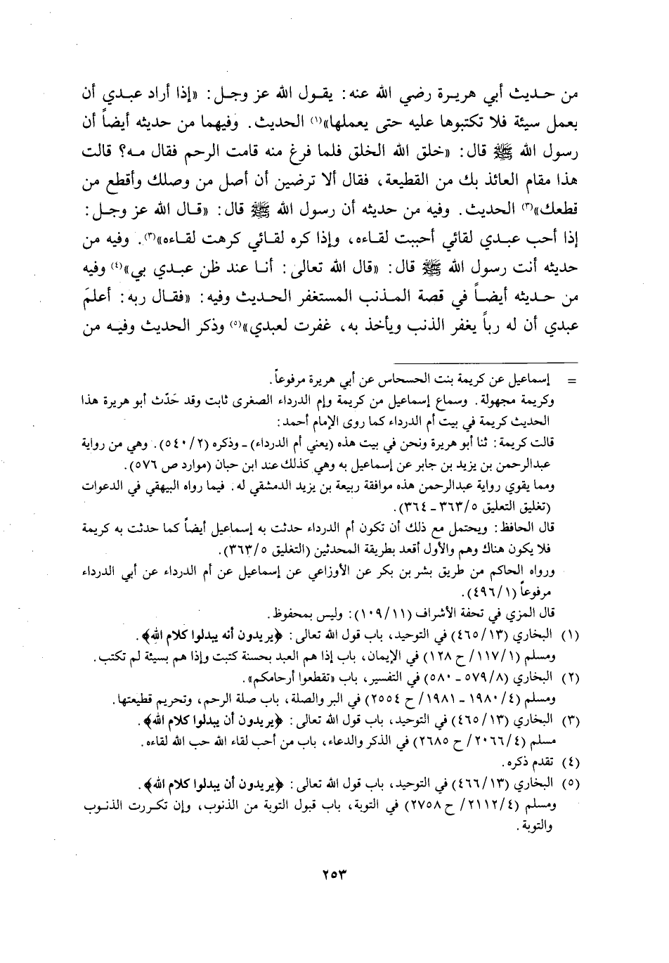 5 البخاري "13/ 466" في التوحيد، باب قول الله تعالى: {يُرِيدُونَ أَنْ يُبَدِّلُوا كَلامَ اللَّهِ} .