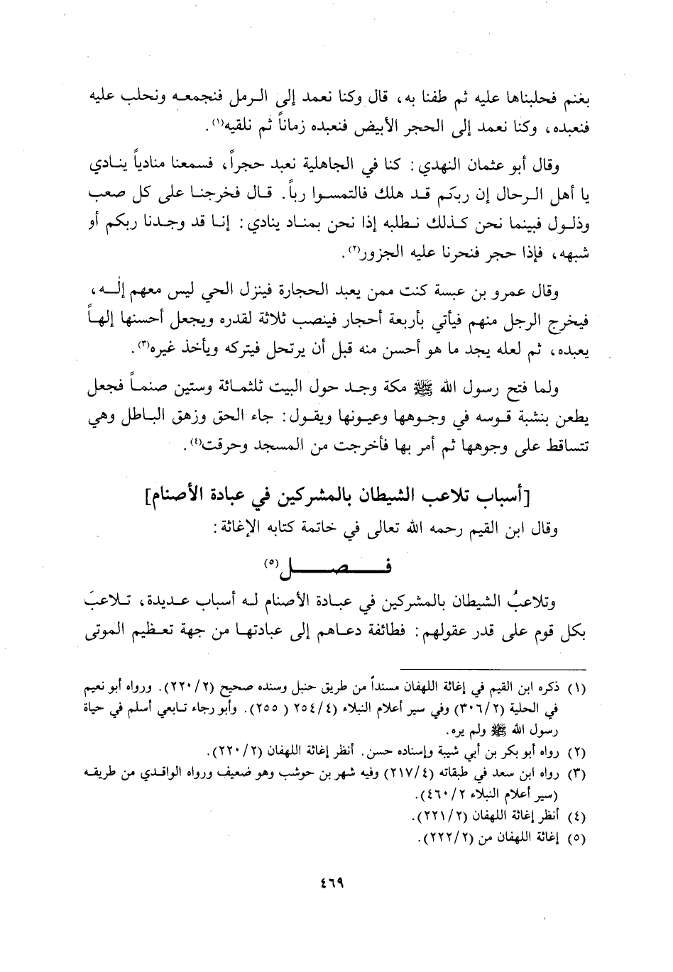 [أَسْبَابُ تَلَاعُبِ الشَّيْطَانِ بِالْمُشْرِكِينَ فِي عِبَادَةِ الْأَصْنَامِ] :