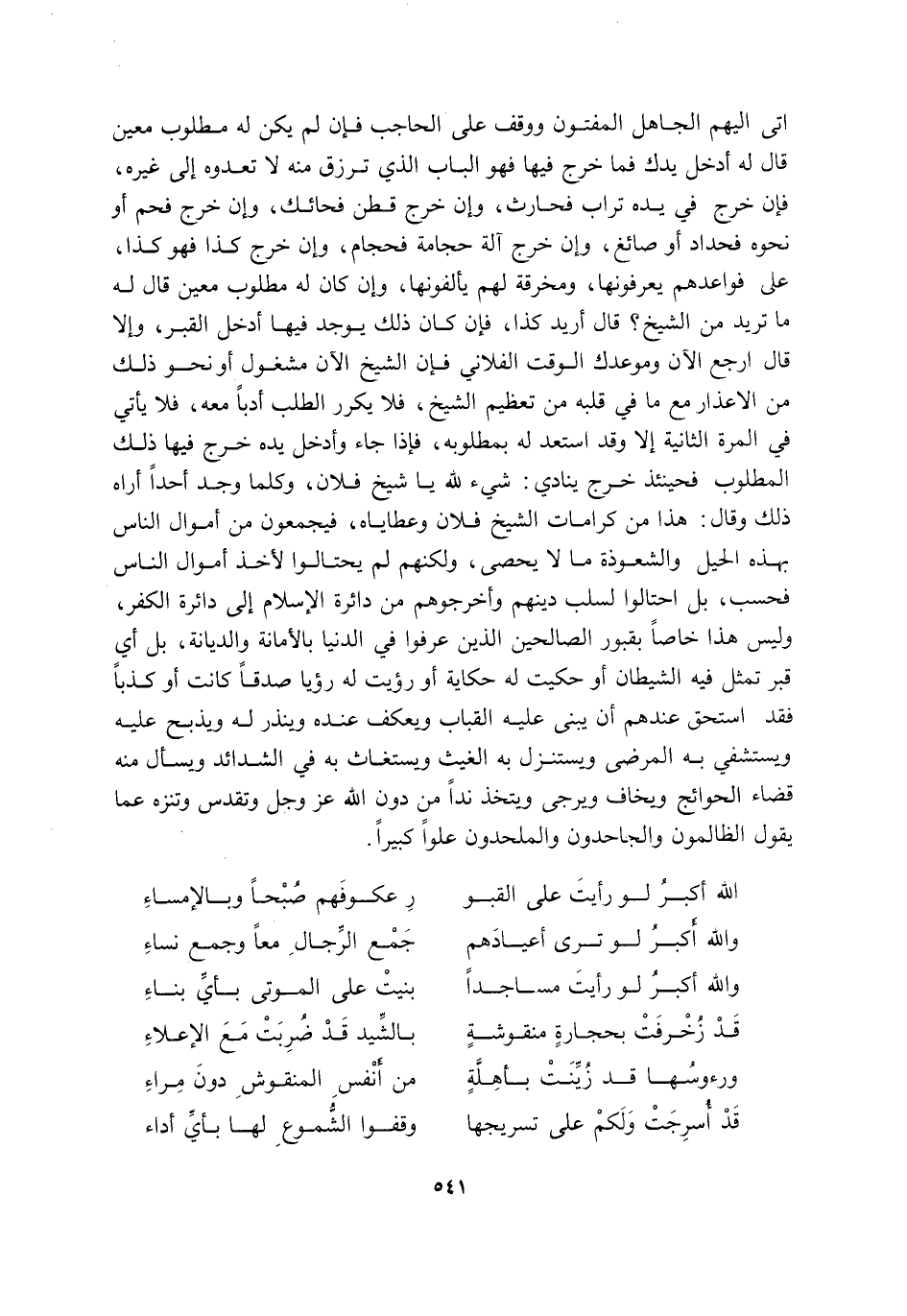 اللَّهُ أَكْبَرُ لَوْ رَأَيْتَ عَلَى الْقُبُو ... رِ عُكُوفَهُمْ صُبْحًا وَبِالْإِمْسَاءِ