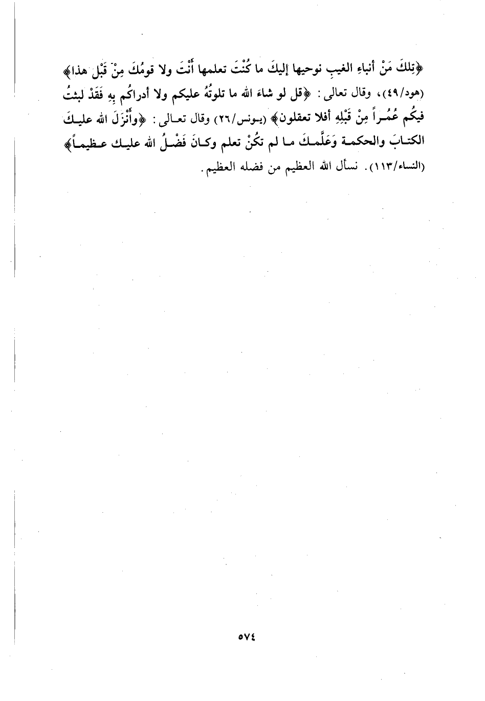 {تِلْكَ مِنْ أَنْبَاءِ الْغَيْبِ نُوحِيهَا إِلَيْكَ مَا كُنْتَ تَعْلَمُهَا أَنْتَ وَلَا قَوْمُكَ مِنْ قَبْلِ هَذَا} [هُودٍ: 49] وَقَالَ تَعَالَى: {قُلْ لَوْ شَاءَ اللَّهُ مَا تَلَوْتُهُ عَلَيْكُمْ وَلَا أَدْرَاكُمْ بِهِ فَقَدْ لَبِثْتُ فِيكُمْ عُمُرًا مِنْ قَبْلِهِ أَفَلَا تَعْقِلُونَ} [يُونُسَ: 26] وَقَالَ تَعَالَى: {وَأَنْزَلَ اللَّهُ عَلَيْكَ الْكِتَابَ وَالْحِكْمَةَ وَعَلَّمَكَ مَا لَمْ تَكُنْ تَعْلَمُ وَكَانَ فَضْلُ اللَّهِ عَلَيْكَ عَظِيمًا} [النِّسَاءِ: 113] . نَسْأَلُ اللَّهَ الْعَظِيمَ مِنْ فَضْلِهِ الْعَظِيمِ.