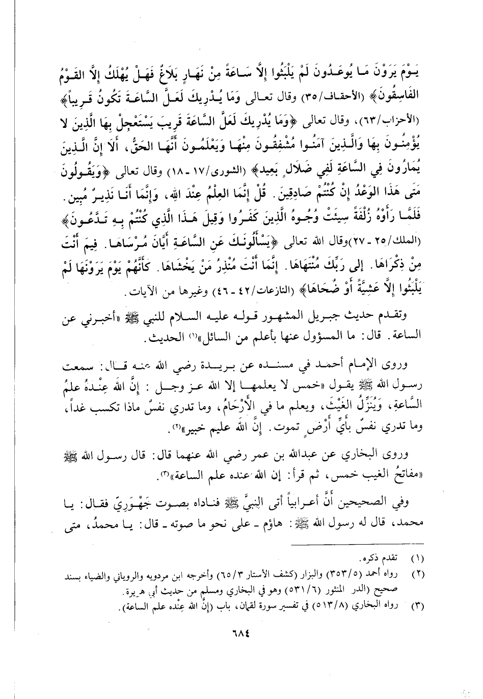 3 رواه البخاري "8/ 513" في تفسير سورة لقمان، باب {إِنَّ اللَّهَ عِنْدَهُ عِلْمُ السَّاعَةِ} .
