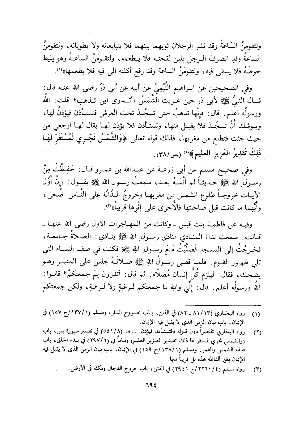 1 رواه البخاري "13/ 81، 82" في الفتن، باب خروج النار، ومسلم "1/ 137/ ح157" في الإيمان، باب بيان الزمن الذي لا يقبل فيه الإيمان.