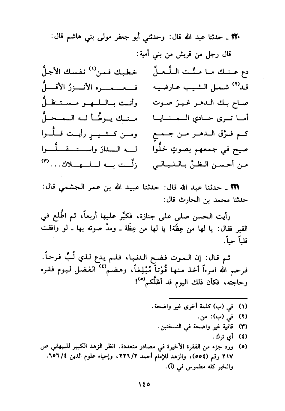 220 - حَدَّثَنَا عَبْدُ اللَّهِ قَالَ: وَحَدَّثَنِي أَبُو جَعْفَرٍ مَوْلَى بَنِي هَاشِمٍ، قَالَ: قَالَ رَجُلٌ مِنْ قُرَيْشٍ مِنْ بَنِي أُمَيَّةَ: «
