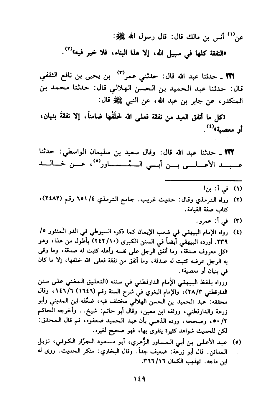 231 - حَدَّثَنَا عَبْدُ اللَّهِ قَالَ: حَدَّثَنِي عُمَرُ بْنُ يَحْيَى بْنِ نَافِعٍ الثَّقَفِيُّ، قَالَ: حَدَّثَنَا عَبْدُ الْحَمِيدِ بْنُ الْحَسَنِ الْهِلَالِيُّ، قَالَ: حَدَّثَنَا مُحَمَّدُ بْنُ الْمُنْكَدِرِ، عَنْ جَابِرِ بْنِ عَبْدِ اللَّهِ، عَنِ النَّبِيِّ صَلَّى اللهُ عَلَيْهِ وَسَلَّمَ قَالَ: «§كُلُّ مَا أَنْفَقَ الْعَبْدُ مِنْ نَفَقَةٍ فَعَلَى اللَّهِ خَلَفُهَا ضَامِنًا، إِلَّا نَفَقَةَ بُنْيَانٍ، أَوْ مَعْصِيَةٍ»