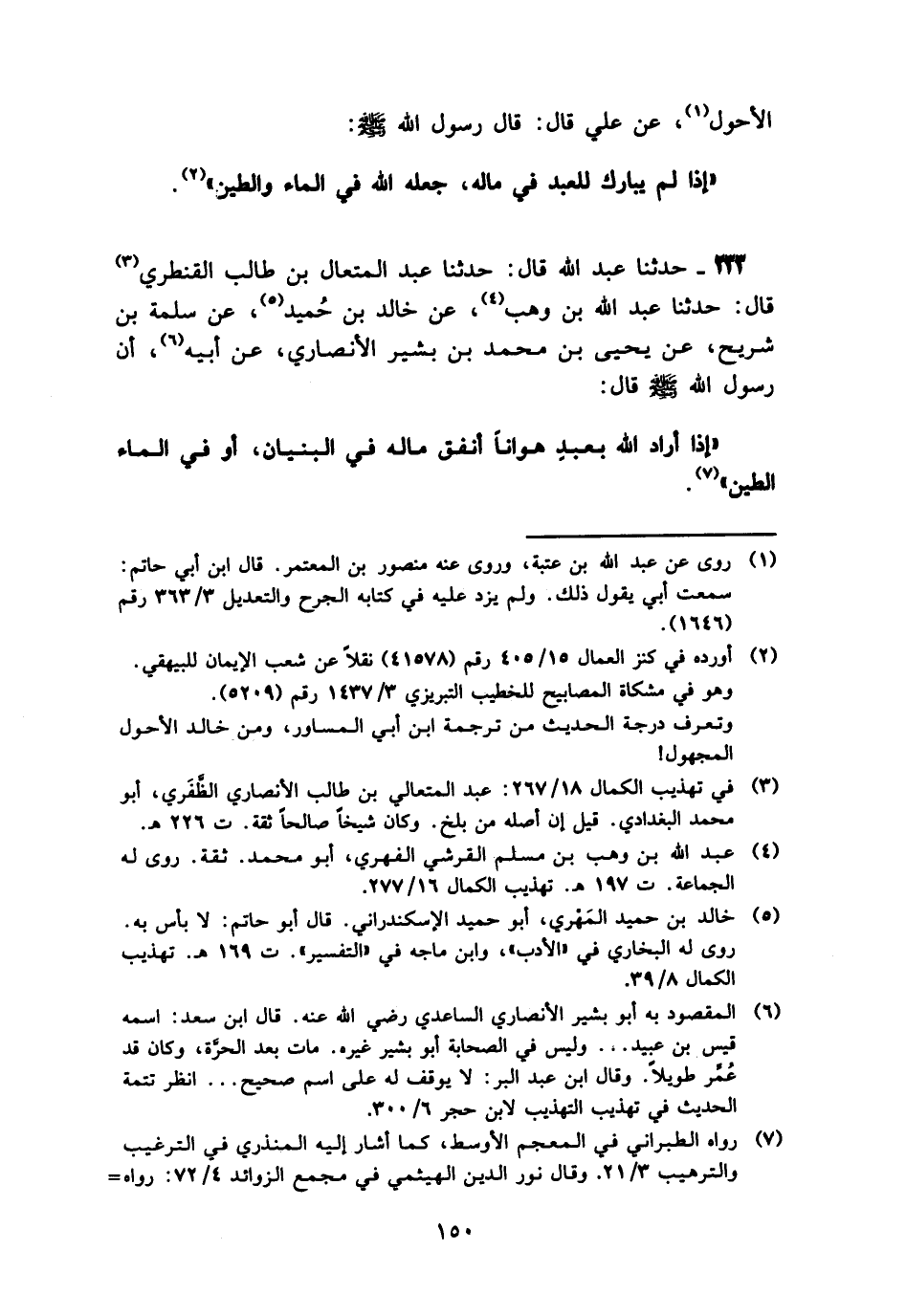 233 - حَدَّثَنَا عَبْدُ اللَّهِ قَالَ: حَدَّثَنَا عَبْدُ الْمُتَعَالِ بْنُ طَالِبٍ الْقَنْطَرِيُّ، قَالَ: حَدَّثَنَا عَبْدُ اللَّهِ بْنُ وَهْبٍ، عَنْ خَالِدِ بْنِ حُمَيْدٍ، عَنْ سَلَمَةَ بْنِ شُرَيْحٍ، عَنْ يَحْيَى بْنِ مُحَمَّدِ بْنِ بَشِيرٍ الْأَنْصَارِيِّ، عَنْ أَبِيهِ، أَنَّ رَسُولَ اللَّهِ صَلَّى اللهُ عَلَيْهِ وَسَلَّمَ قَالَ: «§إِذَا أَرَادَ اللَّهُ بَعَبْدٍ هَوَانًا أَنْفَقَ مَالَهَ فِي الْبُنْيَانِ، أَوْ فِي الْمَاءِ وَالطِّينِ»