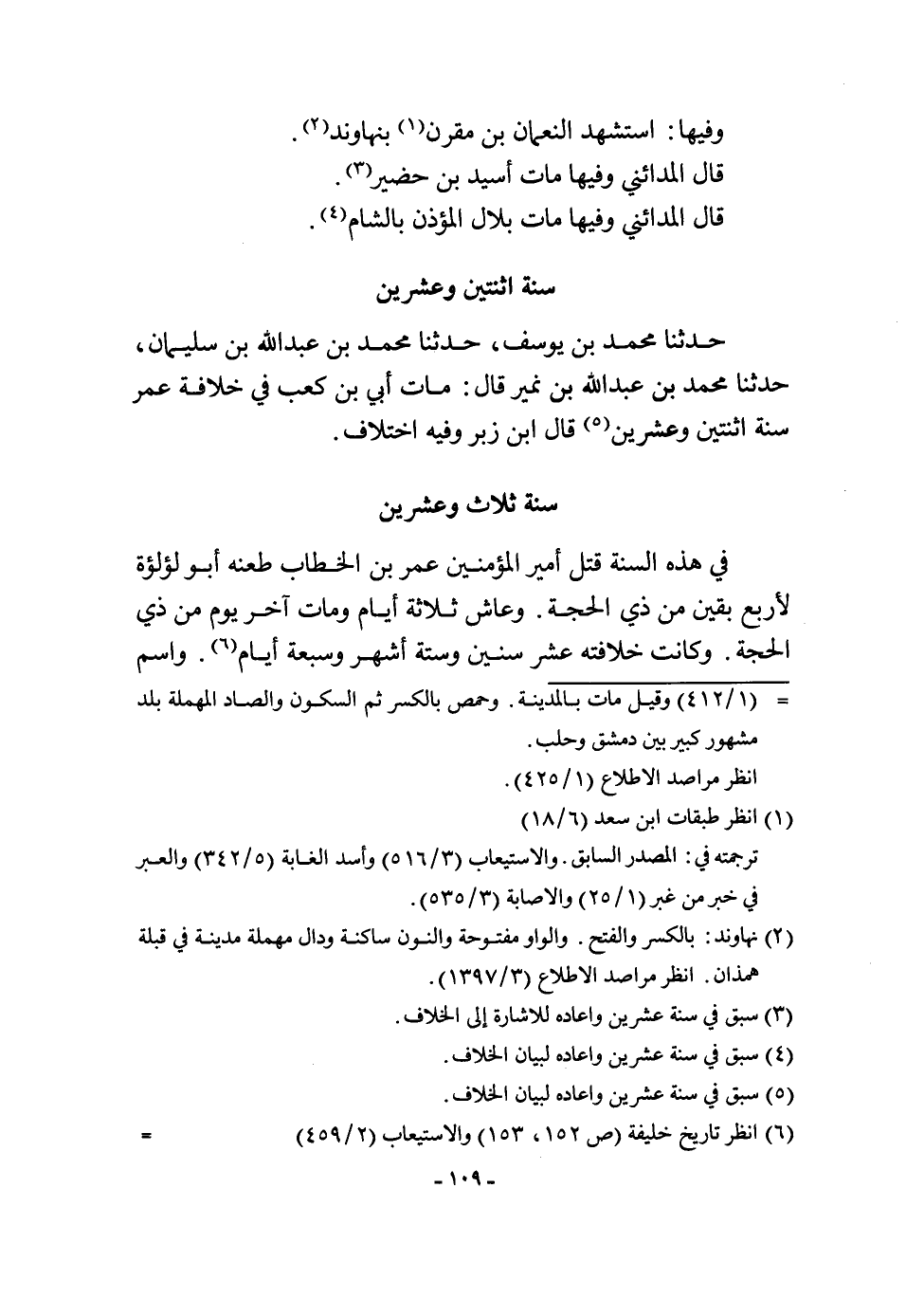 وفيهَا اسْتشْهد النُّعْمَان بن مقرن بنهاوند قَالَ الْمَدَائِنِي وفيهَا مَاتَ أسيد بن حضير قَالَ الْمَدَائِنِي وفيهَا مَاتَ بِلَال الْمُؤَذّن بِالشَّام
