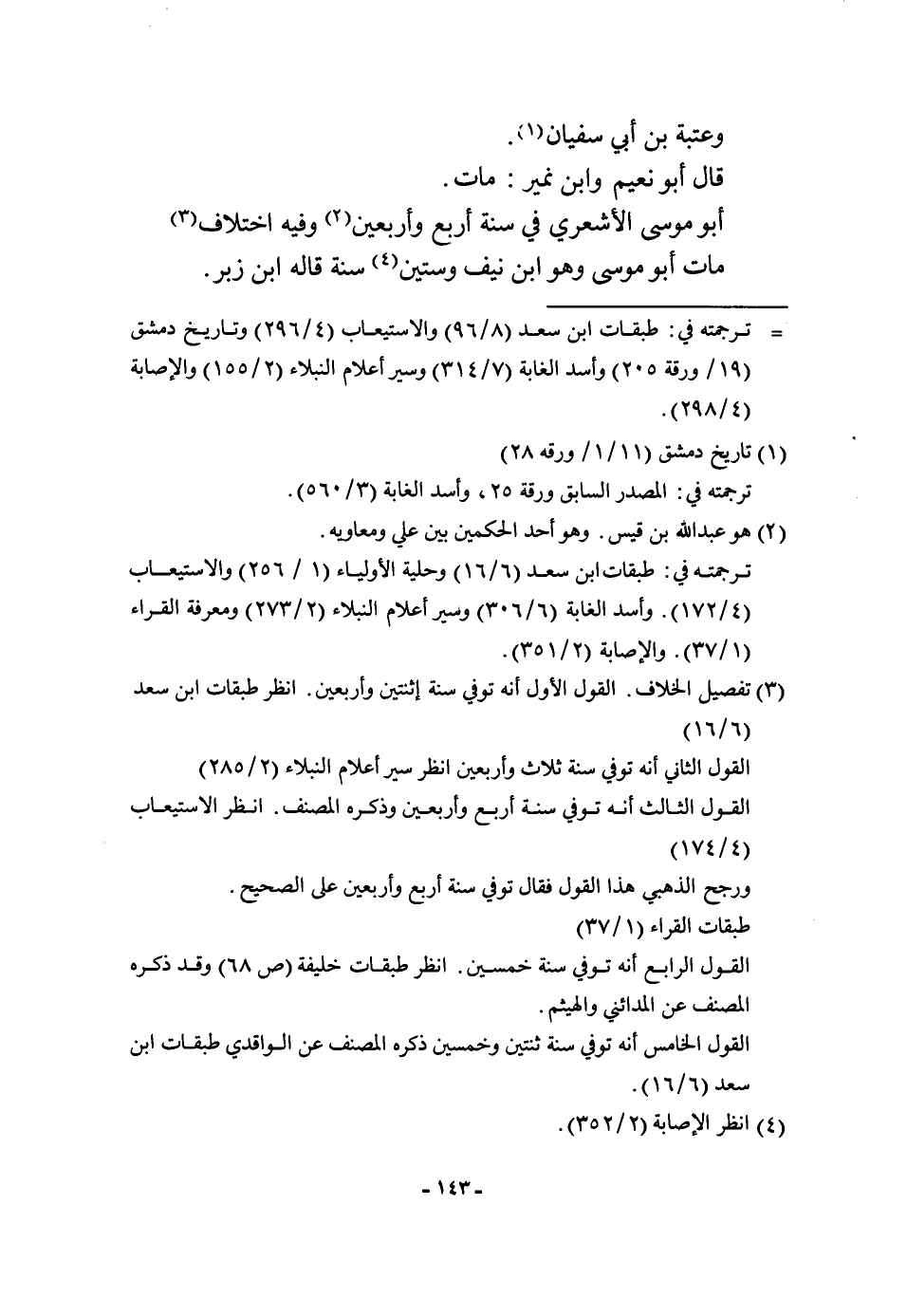 قَالَ أَبُو نعيم وَابْن نمير مَاتَ أَبُو مُوسَى الْأَشْعَرِيّ فِي سنة أَربع وَأَرْبَعين وَفِيه اخْتِلَاف