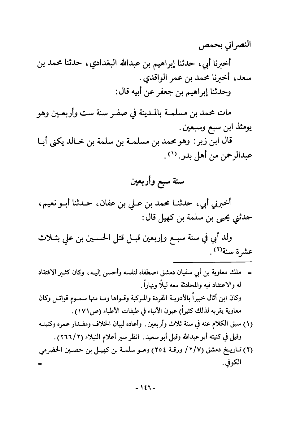 أخبرنَا أبي حَدثنَا إِبْرَاهِيم بن عبد الله الْبَغْدَادِيّ حَدثنَا مُحَمَّد بن سعد أخبرنَا مُحَمَّد بن عمر الْوَاقِدِيّ