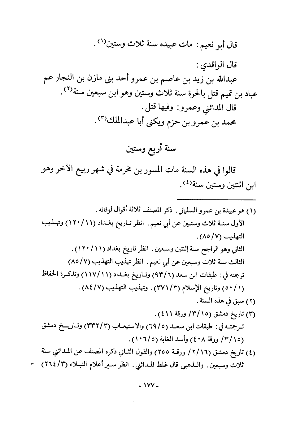 قَالُوا فِي هَذِه السّنة مَاتَ الْمسور بن مخرمَة فِي شهر ربيع الآخر وَهُوَ ابْن اثْنَتَيْنِ وَسِتِّينَ سنة