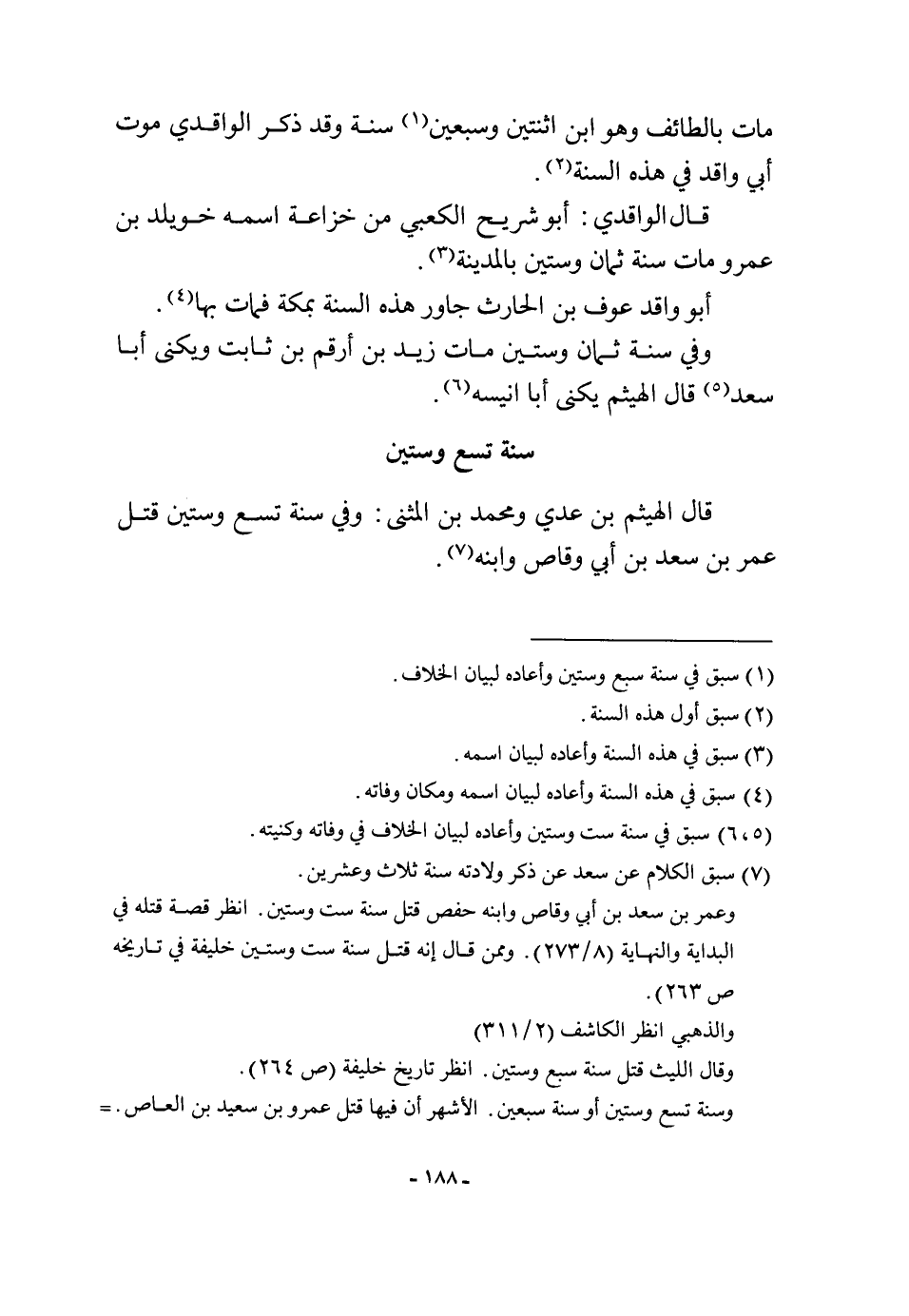 قَالَ الْهَيْثَم بن عدي وَمُحَمّد بن الْمثنى وَفِي سنة تسع وَسِتِّينَ قتل عَمْرو بن سعد بن أبي وَقاص وَابْنه