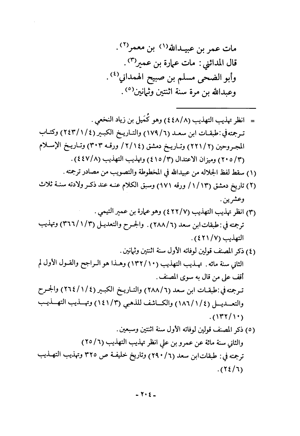 قَالَ الْمَدَائِنِي مَاتَ عمَارَة بن عُمَيْر وَأَبُو الضُّحَى مُسلم بن صبيح الْهَمدَانِي وَعبد الله بن مرّة سنة اثْنَتَيْنِ وَثَمَانِينَ