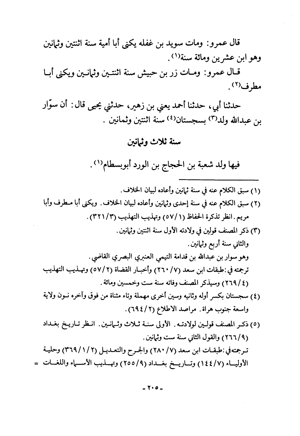 حَدثنَا أبي حَدثنَا أَحْمد يَعْنِي ابْن زُهَيْر حَدثنِي يحيى قَالَ أَن سوار بن عبد الله ولد بسجستان سنة اثْنَتَيْنِ وَثَمَانِينَ