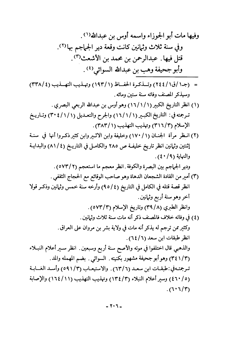 قتل فِيهَا عبد الرَّحْمَن بن مُحَمَّد بن الْأَشْعَث وَأَبُو جُحَيْفَة وهب بن عبد الله السوَائِي