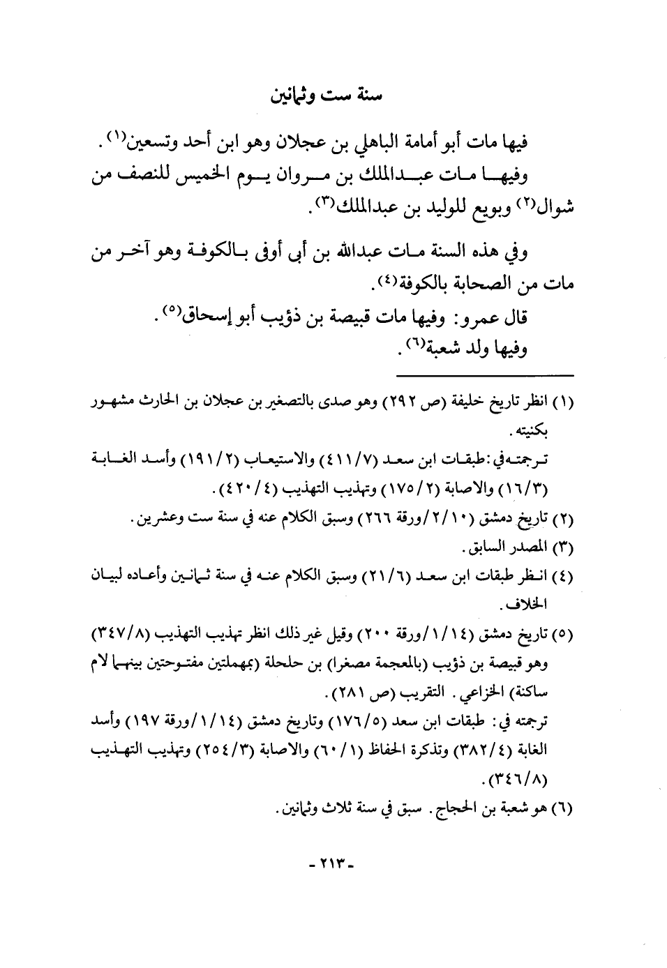 قَالَ عَمْرو وفيهَا مَاتَ قبيصَة بن ذُؤَيْب أَبُو إِسْحَاق وفيهَا ولد شُعْبَة