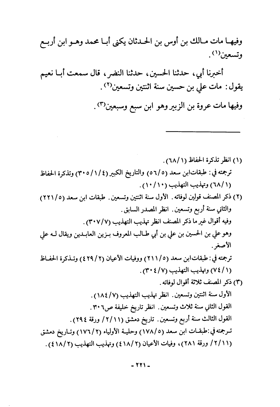 أخبرنَا أبي حَدثنَا الْحُسَيْن حَدثنَا النَّضر قَالَ سَمِعت أَبَا نعيم يَقُول مَاتَ عَليّ بن حُسَيْن سنة اثْنَتَيْنِ وَتِسْعين
