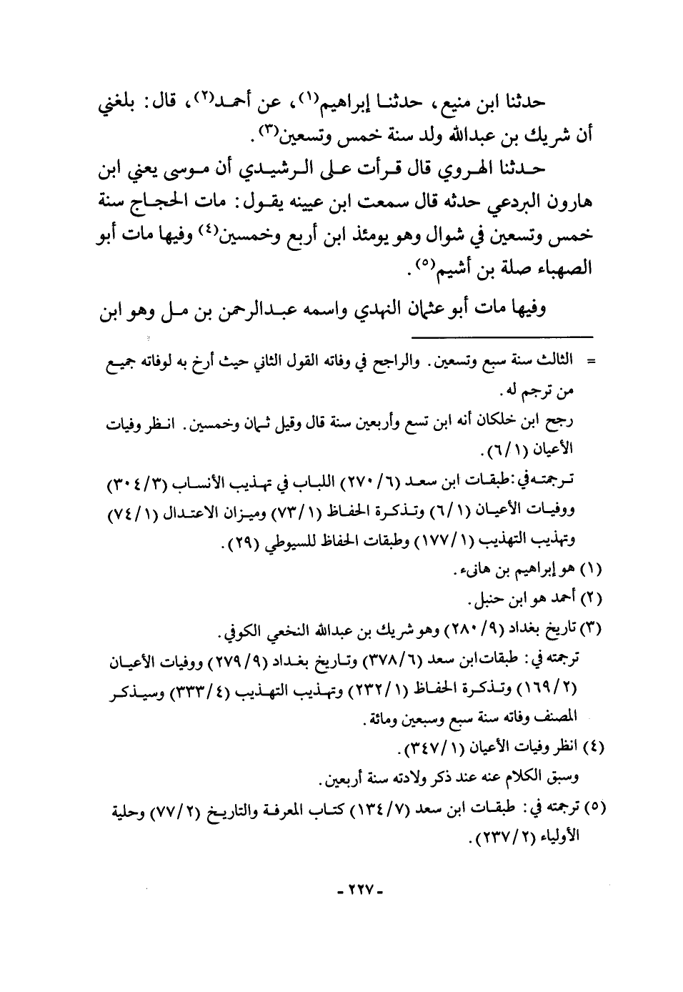 حَدثنَا الْهَرَوِيّ قَالَ قَرَأت على الرَّشِيدِيّ أَن مُوسَى يَعْنِي ابْن هَارُون البردعي حَدثهُ قَالَ سَمِعت ابْن عيينه يَقُول مَاتَ الْحجَّاج سنة خمس وَتِسْعين فِي شَوَّال وَهُوَ يَوْمئِذٍ ابْن أَربع وَخمسين وفيهَا مَاتَ أَبُو الصَّهْبَاء صلَة بن أَشْيَم