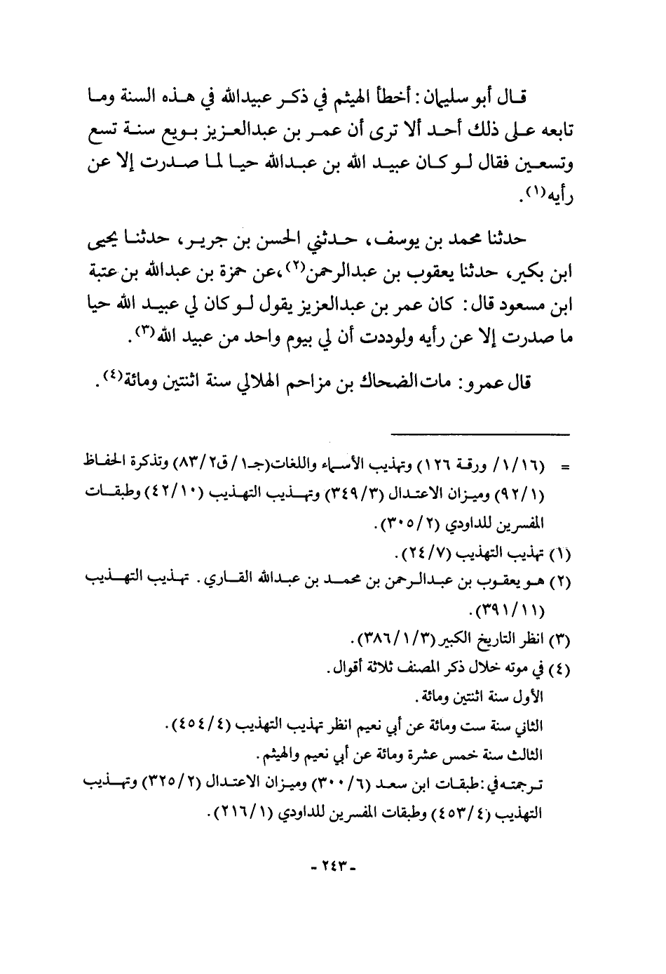 قَالَ أَبُو سُلَيْمَان أَخطَأ الْهَيْثَم فِي ذكر عبيد الله فِي هَذِه السّنة وَمَا تَابعه على ذَلِك أحد أَلا ترى أَن عمر بن عبد الْعَزِيز بُويِعَ سنة تسع وَتِسْعين فَقَالَ لَو كَانَ عبيد الله بن عبد الله حَيا لما صدرت إِلَّا عَن رَأْيه