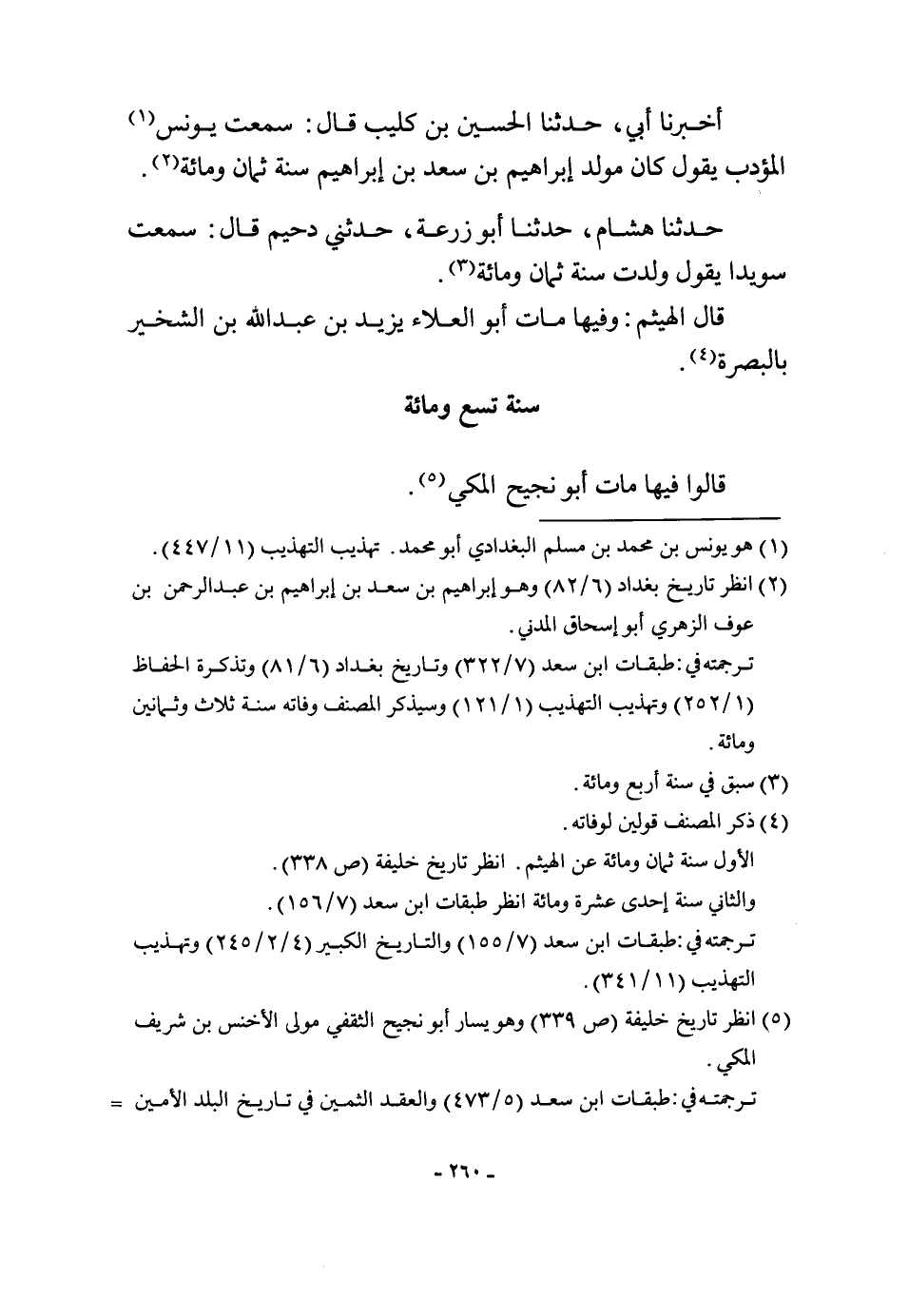 أخبرنَا أبي حَدثنَا الْحُسَيْن بن كُلَيْب قَالَ سَمِعت يُونُس الْمُؤَدب يَقُول كَانَ مولد إِبْرَاهِيم بن سعد بن إِبْرَاهِيم سنة ثَمَان وَمِائَة