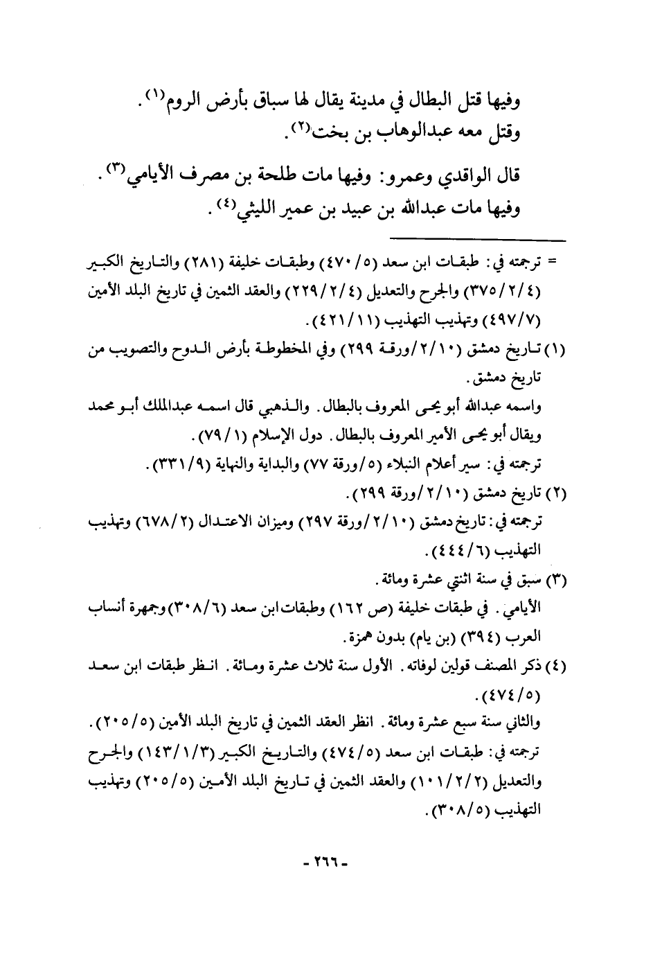 وفيهَا قتل البطال فِي مَدِينَة يُقَال لَهَا سباق بِأَرْض الرّوم وَقتل مَعَه عبد الْوَهَّاب بن بخت