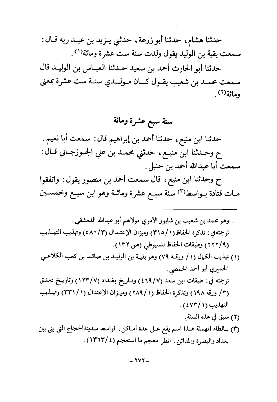 حَدثنَا هِشَام حَدثنَا أَبُو زرْعَة حَدثنِي يزِيد بن عبد ربه قَالَ سَمِعت بَقِيَّة بن الْوَلِيد يَقُول ولدت سنة سِتّ عشرَة وَمِائَة