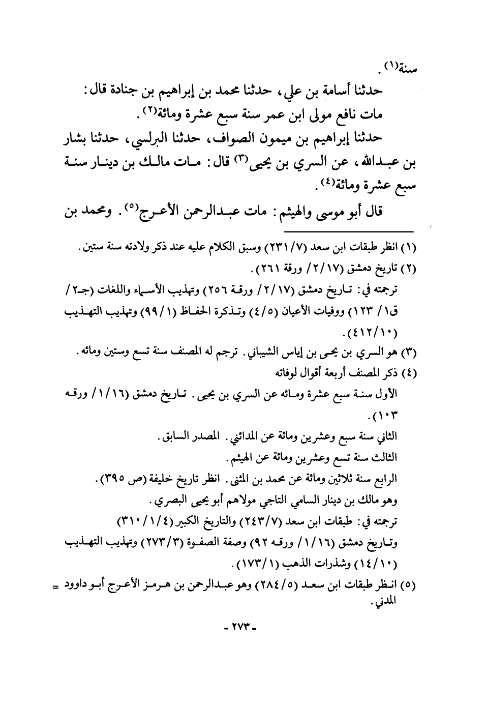 حَدثنَا أُسَامَة بن عَليّ حَدثنَا مُحَمَّد بن إِبْرَاهِيم بن جُنَادَة قَالَ مَاتَ نَافِع مولى ابْن عمر سنة سبع عشرَة وَمِائَة