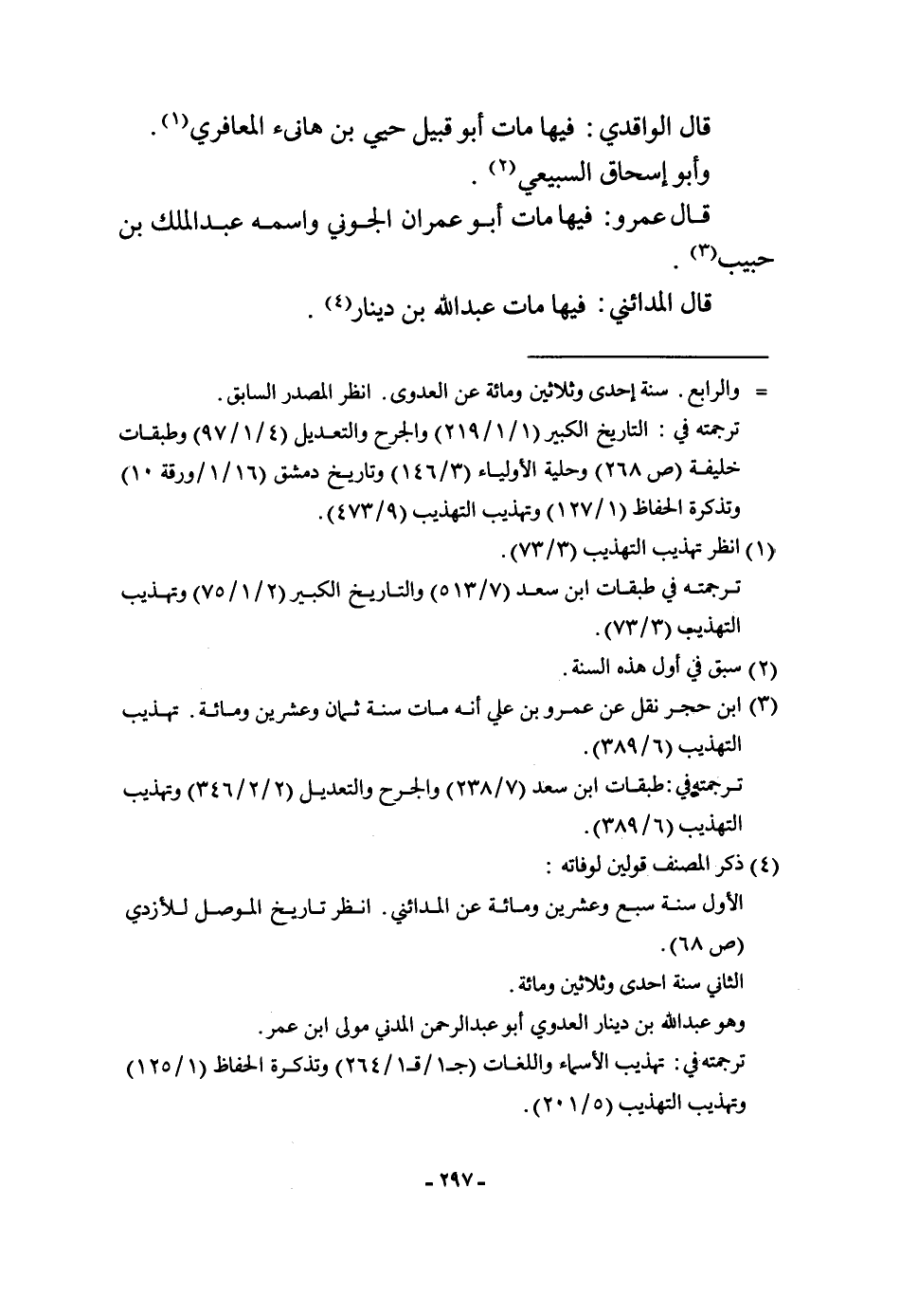 قَالَ الْوَاقِدِيّ فِيهَا مَاتَ أَبُو قبيل حييّ بن هَانِئ الْمعَافِرِي وَأَبُو إِسْحَاق السبيعِي قَالَ عَمْرو فِيهَا مَاتَ أَبُو عمرَان الْجونِي واسْمه عبد الْملك بن حبيب قَالَ الْمَدَائِنِي فِيهَا مَاتَ عبد الله بن دِينَار