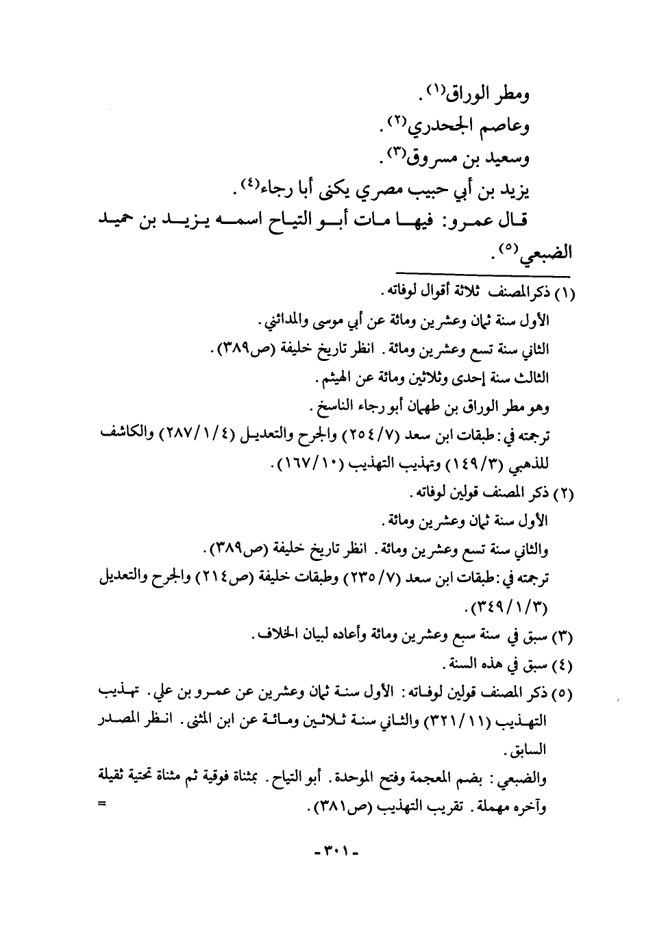 ومطر الْوراق وَعَاصِم الجحدري وَسَعِيد بن مَسْرُوق يزِيد بن أبي حبيب مصري يكنى أَبَا رَجَاء