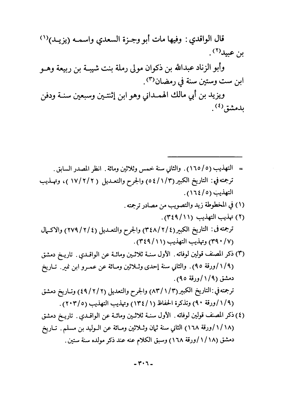 قَالَ الْوَاقِدِيّ وفيهَا مَاتَ أَبُو وجزة السَّعْدِيّ واسْمه يزِيد بن عبيد وَأَبُو الزِّنَاد عبد الله بن ذكْوَان مولى رَملَة بنت شيبَة بن ربيعَة وَهُوَ ابْن سِتّ وَسِتِّينَ سنة فِي رَمَضَان وَيزِيد بن أبي مَالك الْهَمدَانِي وَهُوَ ابْن اثْنَتَيْنِ وَسبعين سنة وَدفن بِدِمَشْق