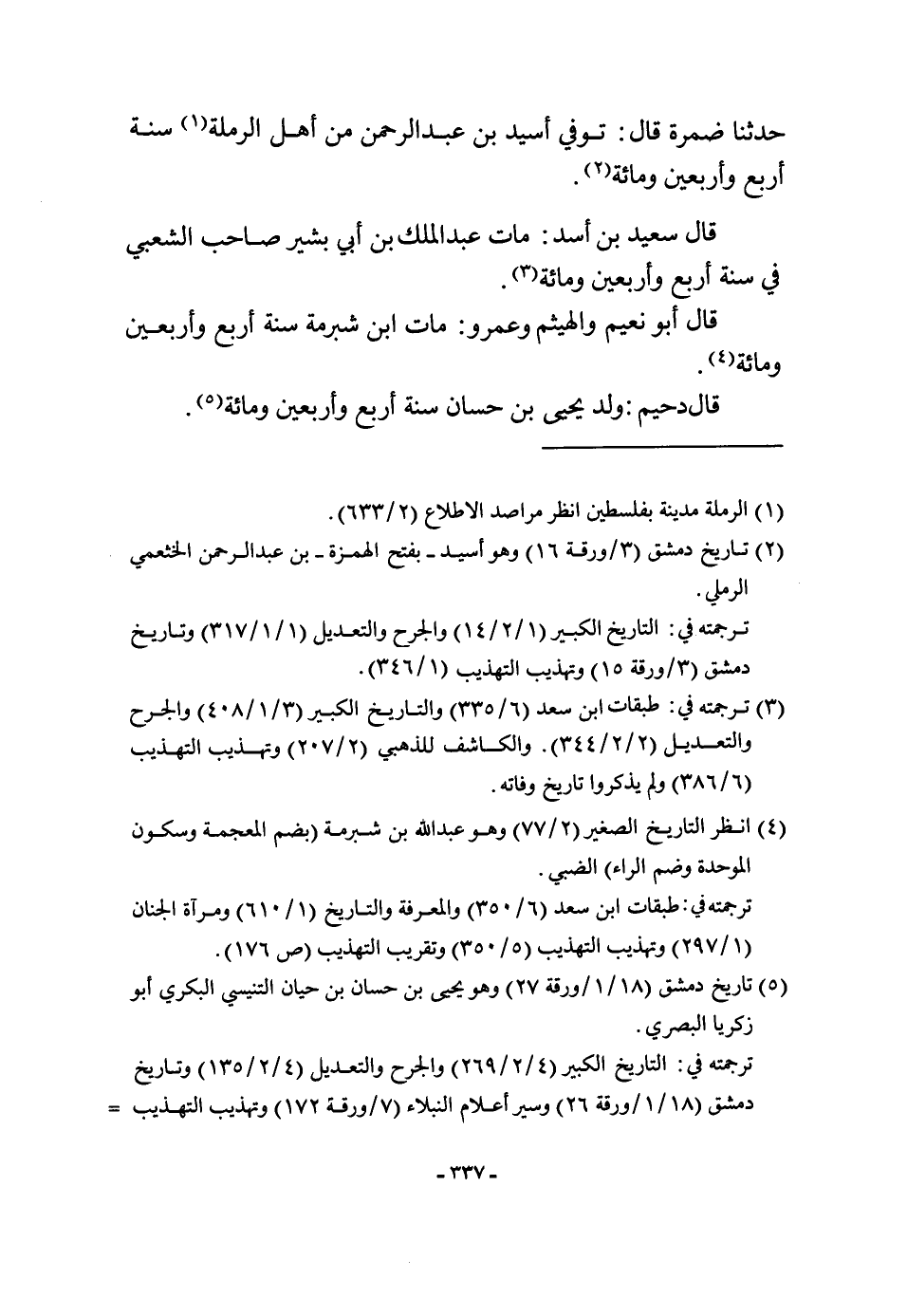 حَدثنَا ضَمرَة قَالَ توفّي أسيد بن عبد الرَّحْمَن من أهل الرملة سنة أَربع وَأَرْبَعين وَمِائَة