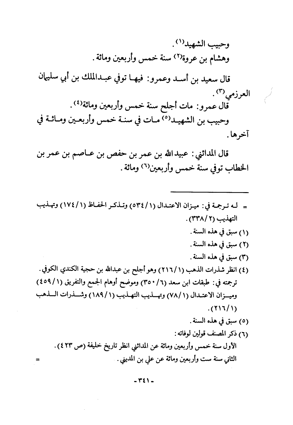 وحبِيب الشَّهِيد وَهِشَام بن عُرْوَة سنة خمس وَأَرْبَعين وَمِائَة