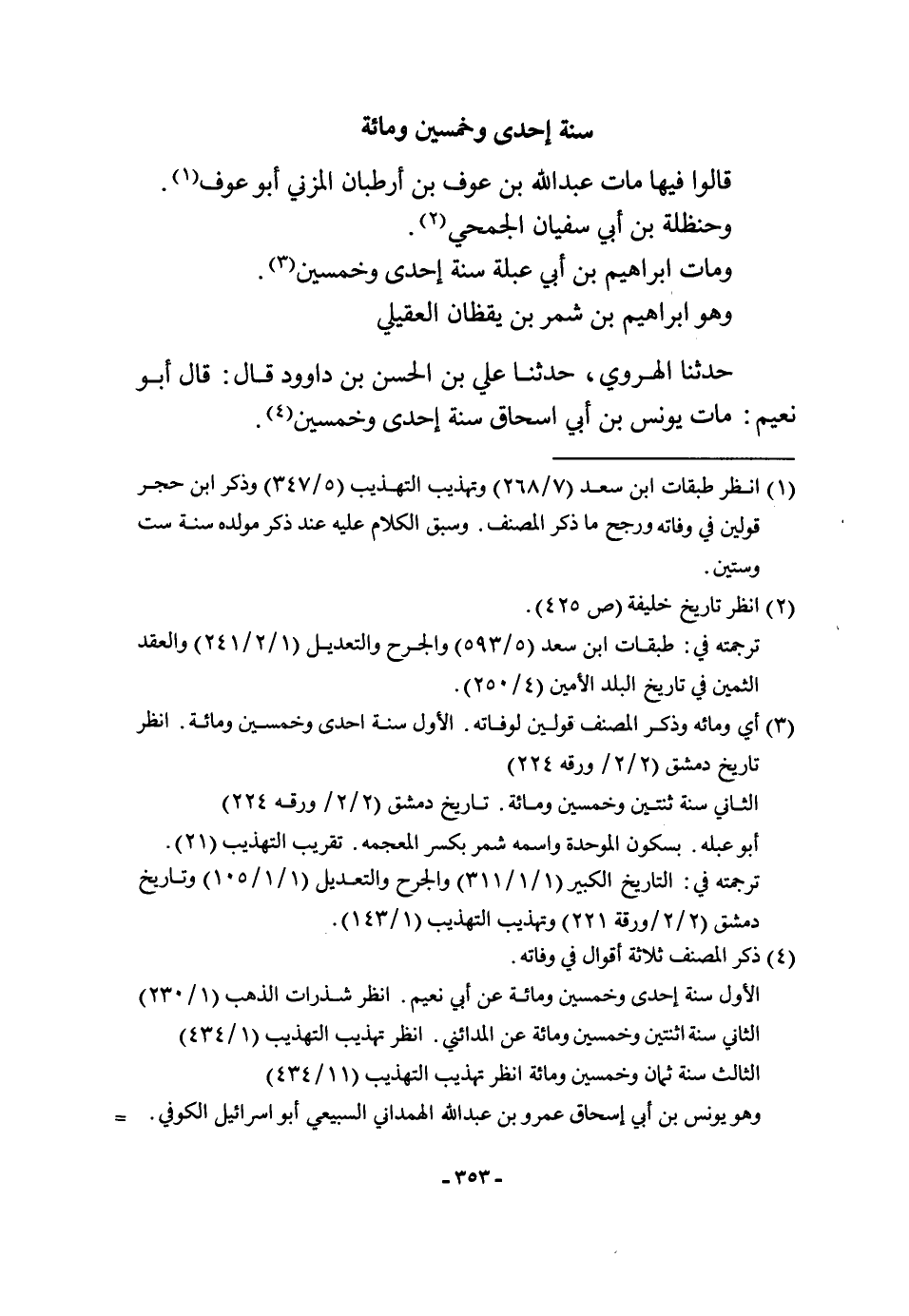 حَدثنَا الْهَرَوِيّ حَدثنَا عَليّ بن الْحسن بن دَاوُود قَالَ قَالَ أَبُو نعيم مَاتَ يُونُس بن أبي إِسْحَاق سنة إِحْدَى وَخمسين
